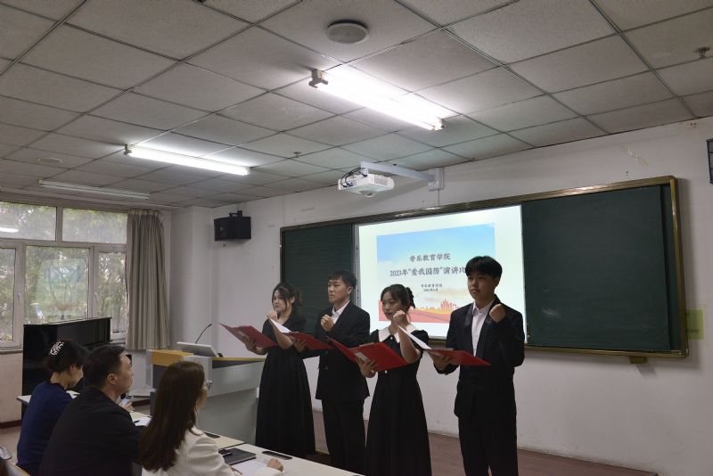 •        为深入学习贯彻习近平新时代中国特色社会主义思想,以“学思想、强党性、重实践、建新功”为总要求,切实将主题教育成效转化为推进学校校园国防教育工作实效,进一步激发大学生的爱国情怀,5月17日,音乐教育学院党总支组织开展了“爱我国防”主题演讲比赛,学生管理办公室主任王旭、分团委书记李静霞、辅导员邵婕妤及参赛学生参加了此次活动。