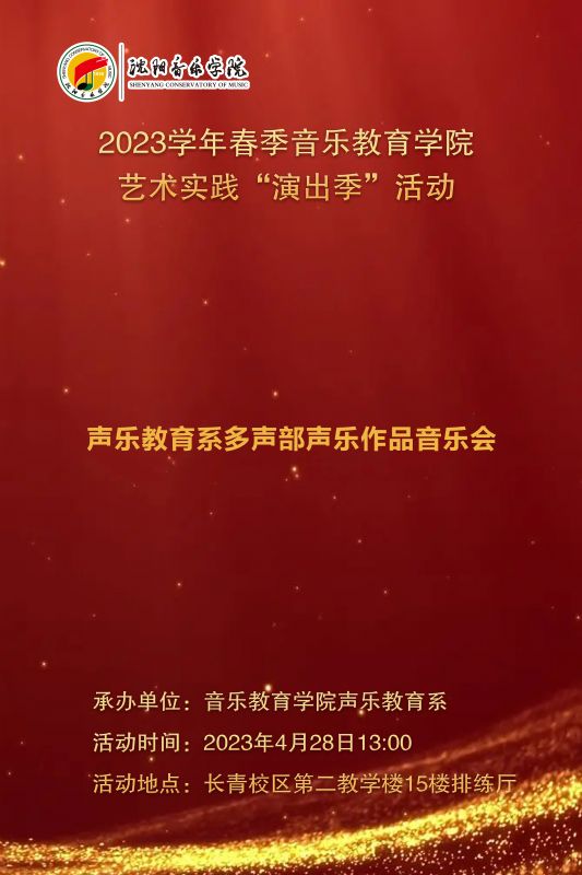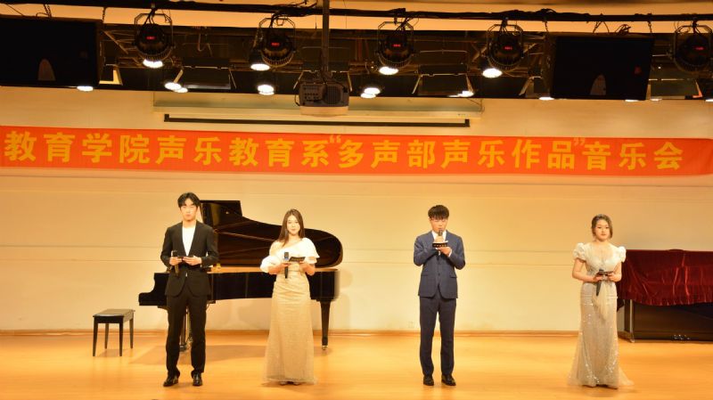 音乐教育学院声乐教育系于2023年4月28日在长青校区第二教学楼15楼多功能厅举办了多声部声乐作品音乐会。本次音乐会由声乐教育系副主任宋志奇主持。