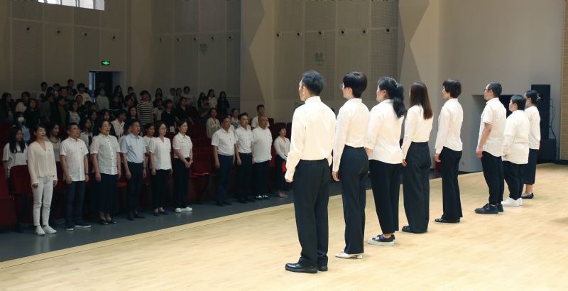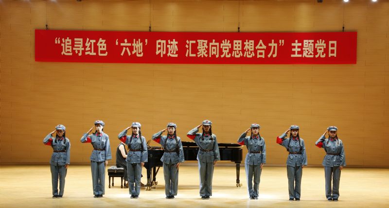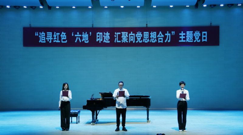 为贯彻落实习近平总书记关于用好红色资源、赓续红色血脉的重要指示精神,深入挖掘辽宁 “六地”红色资源蕴含的红色基因,提升党员师生思想政治素质, 6月27日,第二党支部在大音乐厅举办“追寻红色‘六地’印迹,汇聚向党思想合力”主题党日活动。学校领导班子成员、党员师生100余人参加活动。主题党日活动由第二党支部书记韩嵩楠主持。 主题党日共分为六个篇章。第一篇章由支部党员、副校长张明讲述抗日战争起始地。从九一八事变东北军620团团长王铁汉打响东北抗战第一枪,到满洲省委发表“919宣言”,再到辽宁各地开展抗日救亡运动,描绘了中华儿女在中国共产党的领导下开展波澜壮阔的抗日战争画面。随后,学生庚思羽用竹笛演奏《小八路勇闯封锁线》,时而轻快悠扬,时而低回婉转,时而高亢激昂,再现了小八路冒着枪林弹雨通过敌人封锁线,在负伤后重上战马递送情报的情景,展现了中华儿女机智勇敢,面对抗日战争视死如归的伟大气魄。
