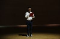 第四篇章支部党员卢佳璇讲述雷锋精神发祥地。从在鞍钢化工总厂与辽宁结缘,在辽阳应征入伍,在营口接受新兵操练,再到抚顺工作生活,展现了共产主义战士雷锋在辽宁四年苦干实干、争做贡献、无私奉献的精神。男声小合唱《接过雷锋的枪》,激昂的旋律,高亢的歌声,激发党员师生践行雷锋精神,做全心全意为人民服务楷模的决心、信心。