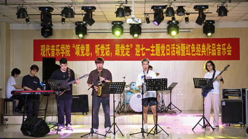 为了庆祝中国共产党成立102周年,2023年6月26日,现代音乐学院党总支举办了“颂党恩 听党话 跟党走”迎七一主题党日活动暨红色经典作品音乐会。领导班子成员、党支部书记及支部委员、党员师生代表、入党积极分子代表共计70余人参加活动。