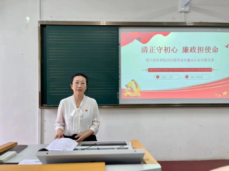激励筑牢思想防线,廉洁从业,顺利开启人生新征程。 6月27日,现代音乐学院党总支副书记、纪检委员王华为2023届全体毕业生讲授“清正守初心、廉洁担使命”主题党课。2023届全体毕业生及辅导员共计150余人参加。