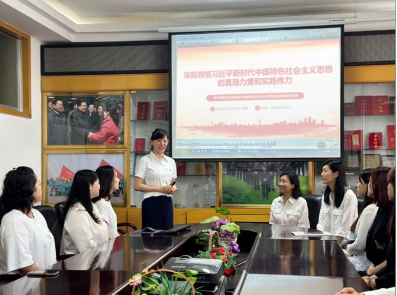 党总支书记陈璐以《深刻领悟习近平新时代中国特色社会主义思想的真理力量和实践伟力》为题,以“以学增智”的内涵、意义为切入点,围绕深刻认识提升“三种能力”的重要意义、准确把握“三种能力”的核心要义,理解和掌握“三种能力”的实践路径三方面进行深刻剖析,将实际工作与党的二十大提出的“六个必须坚持”结合起来,就如何提升党建与思想政治工作水平,促进高质量发展提出明确要求。