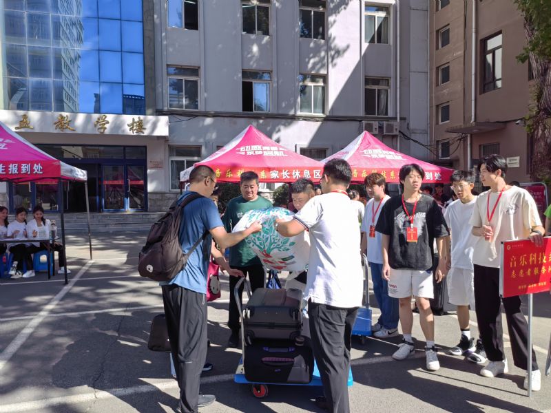 迎新现场设立了新生报到处和家长休息区,负责接待的师生工作人员们热情周到、尽心尽责,营造了让家长放心,让学生舒心,热情温馨、积极向上、文明和谐、安全有序的迎新工作环境。志愿者们活跃在校园的每个角落,他们积极引导新同学们完成报到流程,热心帮助新生和家长们搬运行李,为出行提供方便。