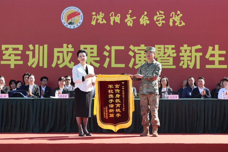 9月28日上午,沈阳音乐学院2023年军训成果汇演暨新生开学典礼在长青校区隆重举行。学院党委书记赵恒心,副院长冯志莲(主持行政工作),纪委书记、监察专员闫玉娇,副院长庞渤,院长助理付晓东,党委委员、组织部部长张庆玫,承训部队领导及教官、相关职能(教辅)部门负责人,各二级院(系)领导班子成员,新生辅导员,2023级全体新生及2022级获表彰学生参加了典礼。典礼由庞渤主持。