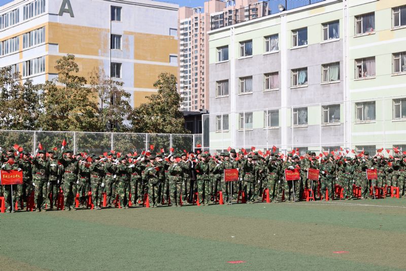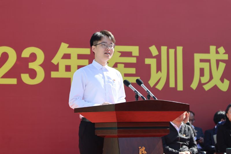 典礼上,举行了军训成果汇演。伴随着开训的口令,六名护旗手高擎国旗率先入场。由各院(系)新生组成的38支军训方队依次经过主席台,进行分列式表演。队伍整齐划一、口号响彻云霄、步伐掷地有声、目光坚毅从容,彰显了沈音学子踔厉奋发、勇担使命的坚定决心和昂扬向上、自强不息的精神风貌。