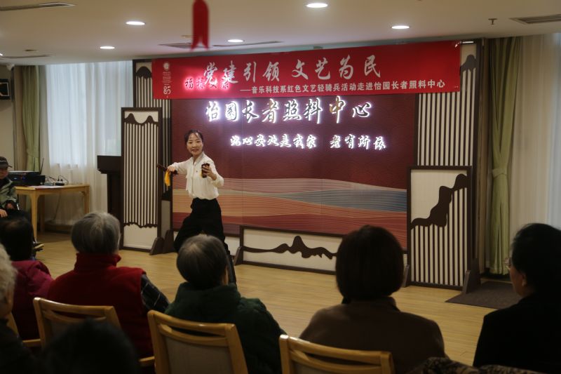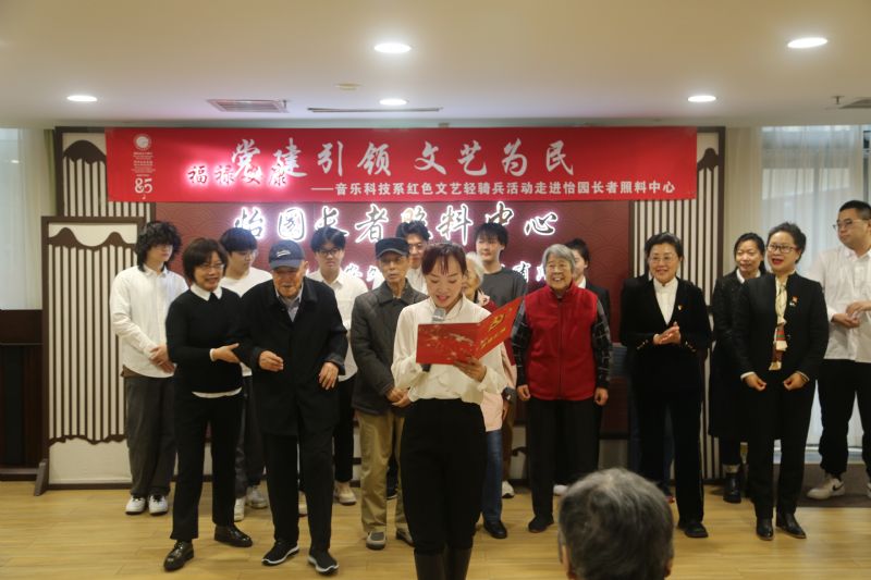 为深入推进学习贯彻习近平新时代中国特色社会主义思想主题教育,贯彻落实习近平总书记关于文艺工作的重要论述,弘扬“敬老、爱老、助老”的传统美德,11月8日,音乐科技系直属党支部开展了“党建引领,文艺为民”红色文艺轻骑兵走进怡园长者照料中心主题党日活动。音乐科技系班子成员、怡园长者照料中心的工作人员,以及音乐科技系党员、入党积极分子,部分团员参加了此次活动。
