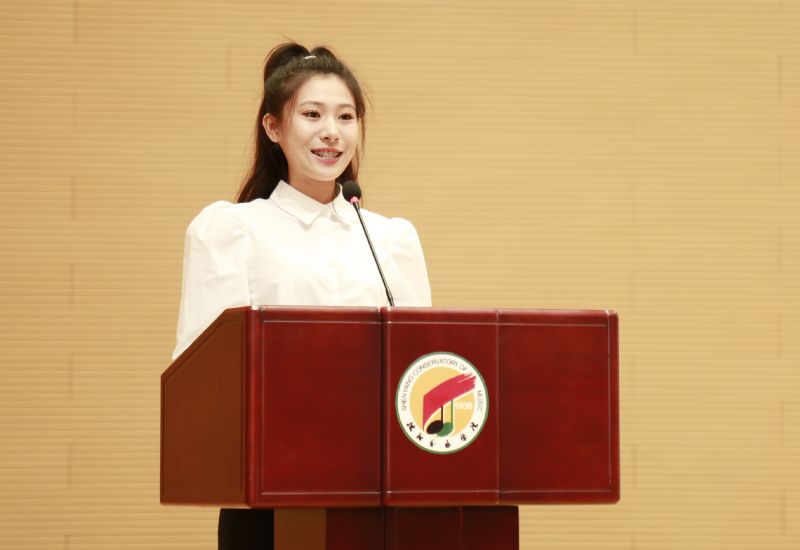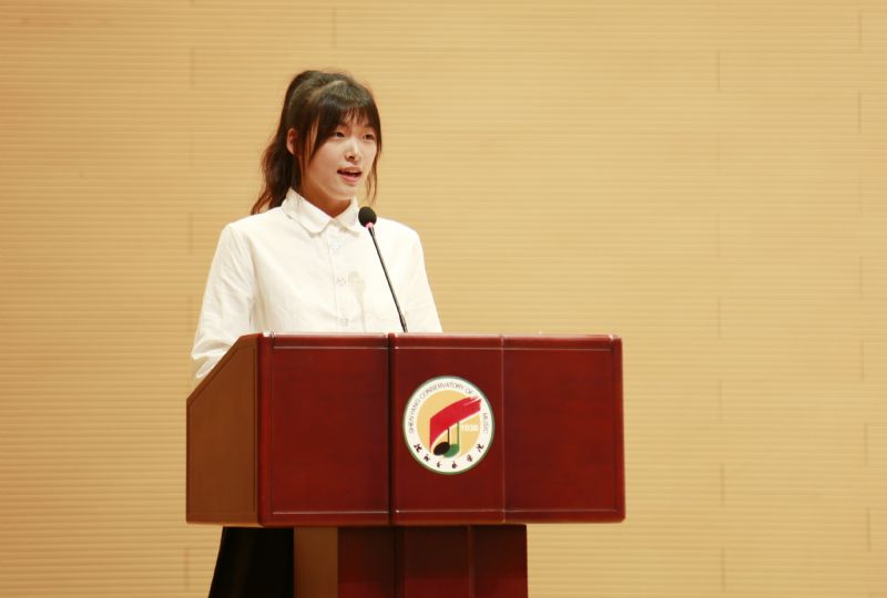 2023级新生王涵漪代表全体新生发言,立志以崭新的姿态投入到全新的学习生活中去,不辜负父母的嘱托和学校的辛勤培养。