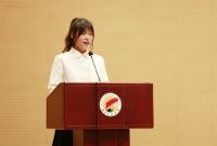 2022级学生刘伊文彤代表全校老生向2023级新同学表示热烈的祝贺和欢迎,并将自己在附中学习生活中总结出的学习经验分享给新同学。