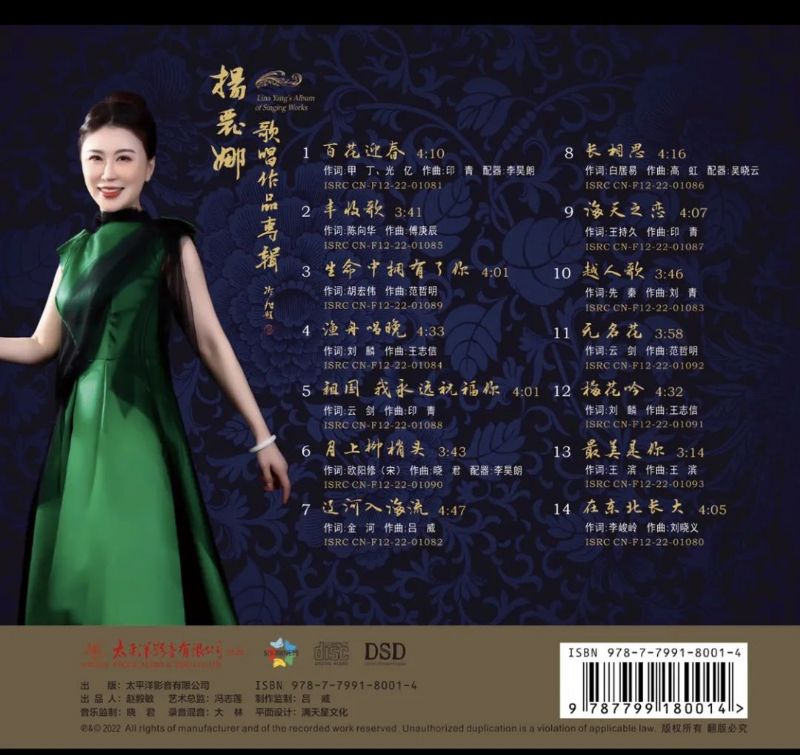 我院民族声乐教育系教授杨丽娜演唱专辑——《杨丽娜歌曲作品专辑》,由太平洋影音公司出版发行。
