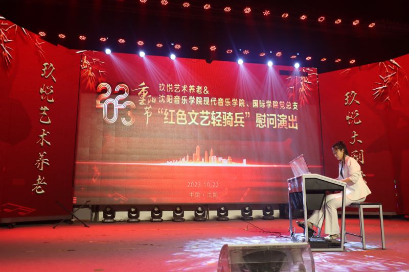 为巩固学习贯彻习近平新时代中国特色社会主义思想主题教育成果,引导广大党员在推动学院高质量发展中主动作为、担当有为,2023年10月22日重阳节前夕,沈阳音乐学院红色文艺轻骑兵第67小分队(现代音乐学院、国际学院党总支)走进玖悦艺术养老院开展慰问演出,践行文艺“为人民服务、为社会主义服务”的初心使命,弘扬鲁艺精神,传承红色基因。
