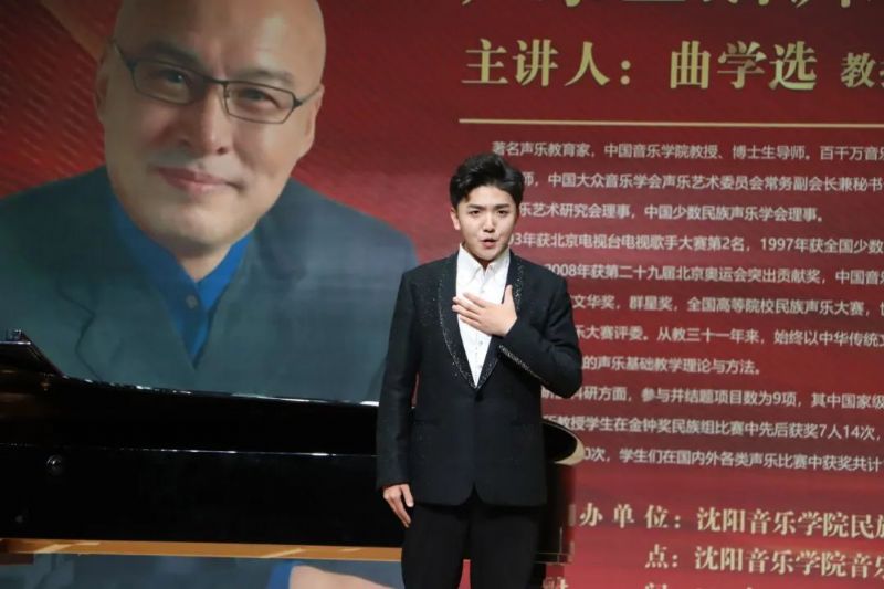 • 为庆祝沈阳音乐学院85周年校庆,提高教师的教育教学水平和加强学生的专业水准,11月2日民族声乐系邀请著名声乐教育家,中国音乐学院教授、博士生导师曲学选举办“声乐基础训练的重要性”讲座,讲座在我院音乐厅举办,民族声乐系主任匡祎主持讲座,中国音乐学院声乐歌剧系钢琴艺术指导、硕士研究生导师、一级演奏员、作曲家、钢琴家邓垚教授担任艺术指导,民族声乐系全体师生参加了讲座。