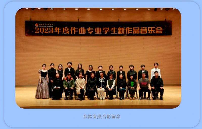 理论学科举办的学生新作品音乐会,既为作曲专业的学生提供相互学习交流、展示作品的机会,促进学生创作思维的形成,又为各学科学生之间提供了相互合作的机会,对提升学生团队合作精神、增强集体荣誉起到了积极促进作用。 本场音乐会倾注了专业教师的大量心血,在学生们创作的道路上默默耕耘、指点迷津;在演奏上,严抓细节、深扣细挖,力求更好地掌握曲目的调性和情感,从而更加准确地表达作者的思想内涵。