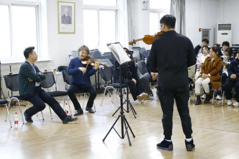 亚当·班达小提琴大师班,由管弦器乐教育系主任韩庶主持。管弦器乐教育系3名小提琴专业学生上台演奏了《维尼亚夫斯基d小调协奏曲第一乐章》《贝多芬小提琴协奏曲第三乐章》及《帕格尼尼随想曲No.17》。亚当对学生在演奏过程中的音色、音准以及作品风格把握进行指导并亲自示范,并对于小提琴专业日常训练的方法提出了中肯的建议。亚当先生严谨、专业的教学态度和高超的演奏技巧让在场的师生受益匪浅。