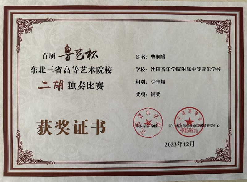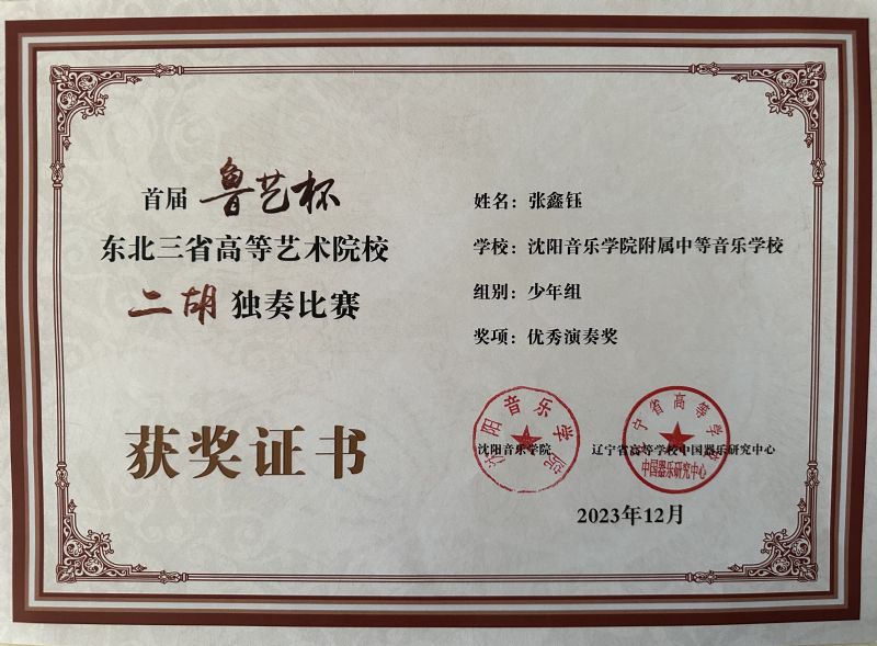 12月17日,由沈阳音乐学院与辽宁省高等学校中国器乐研究中心共同主办的首届鲁艺杯东北三省高等艺术院校二胡独奏比赛圆满落幕。当晚,颁奖独奏音乐会在沈阳音乐学院音乐厅隆重举行,为历时3天的比赛画上圆满句号。