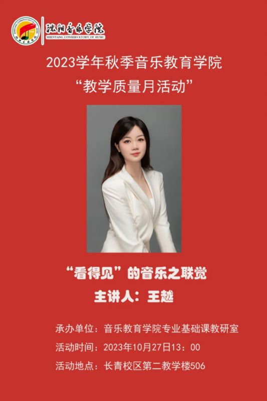 •       音乐教育学院专业基础课教研室于2023年10月27日13:00,在长青校区第二教学楼506教室,开展了王越老师主讲的《“看得见”的音乐之联觉》教学公开课活动。
