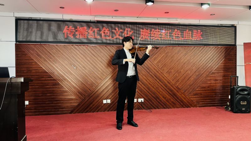 讲演会上,民族器乐系2021级研究生王嘉慧、管弦系2020级本科生简上杰结合自身专业学习及对作品感悟,分别讲述了乐曲《山丹丹开花红艳艳》(古筝版)、《我的祖国》(小提琴版)的曲式结构、情感表达及曲目背后的红色精神,并为现场观众完整演绎了两首乐曲。本次红色经典音乐作品讲演会不仅为社区党员带来了精彩的文艺节目,同时也让社区党员们从红色旋律中深刻感悟坚持真理、坚守理想的初心使命。