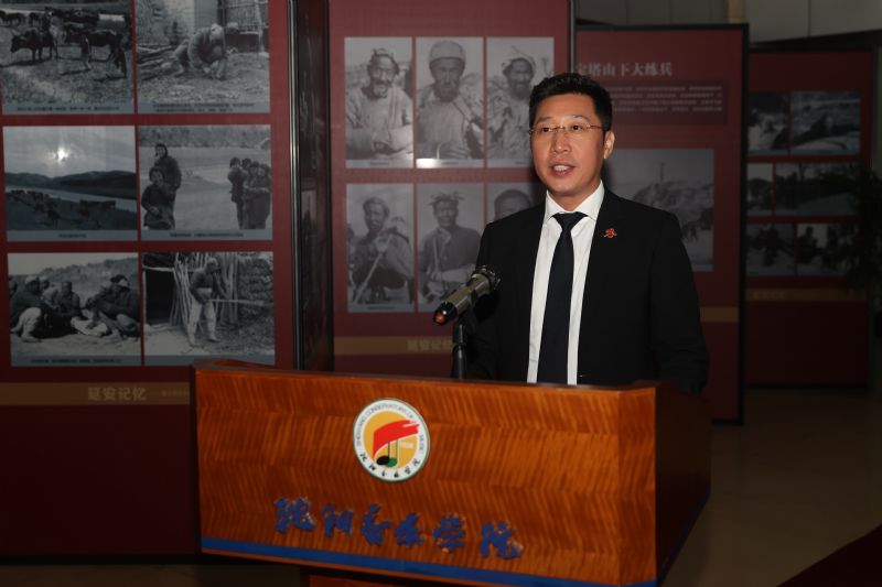 开幕式上,庞渤代表学院对延安鲁艺文化中心侯海成一行的到来表示热烈的欢迎,对延安鲁艺文化中心长期以来对沈阳音乐学院在传承鲁艺红色文化方面的工作支持表示衷心的感谢。他回顾了毛泽东主席对程墨“多拍一些战士和群众”以及对鲁艺师生“走出小鲁艺,走向大鲁艺”的叮嘱,着重介绍了程墨为鲁艺拍摄的经典照片——秧歌剧《夫妻识字》。他表示沈阳音乐学院一定倍加珍惜《延安记忆——跟着照片回延安》全国高校巡展首站的机会,组织师生认真观展,将延安红色文化的基因进一步发扬光大。