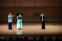 另外还演奏了极具北方特点的《梅花雪花》、《草原牧笛》、《阳关三叠》、《阿里山,你可听见我的笛声》,音乐会在热烈火爆的《欢庆》声中结束。在观众的一再要求下,陈晓光带领她的学生们返场了赵越超先生的代表作《麦收时节》。