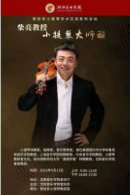 5月17日,由我院管弦系主办的著名小提琴演奏家、指挥家、音乐教育家,柴亮教授小提琴大师班在沈阳音乐学院音乐厅举行。曾任美国纽约市大学布鲁克林音乐学院教授,上海音乐学院特聘教授,中央音乐学院教授、小提琴教研室主任,现任湖南师范大学“潇湘学者”特聘教授,沈阳音乐学院客座教授。