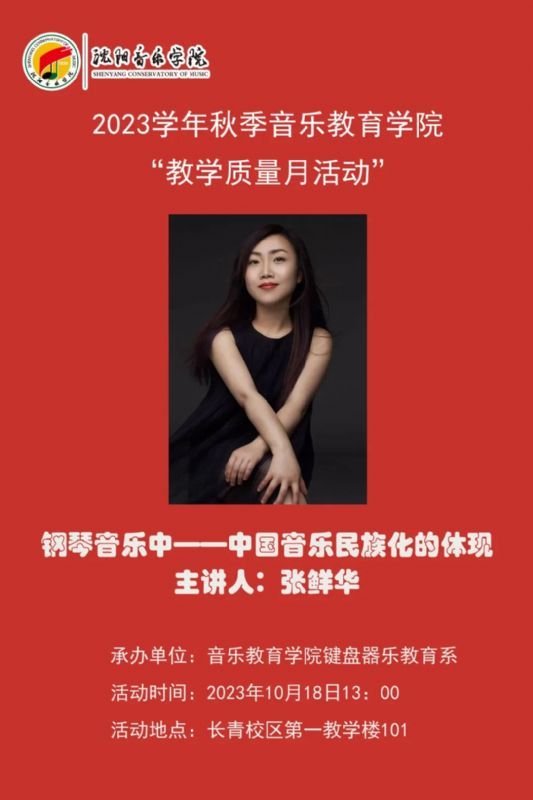 2023年10月18日13时,键盘器乐教育系在长青校区第一教学楼101举办了一场《钢琴音乐中中国音乐民族化的体现——“民歌曲调”在钢琴作品中的经典传承》公开课,主讲人为键盘器乐教育系教师张鲜华。