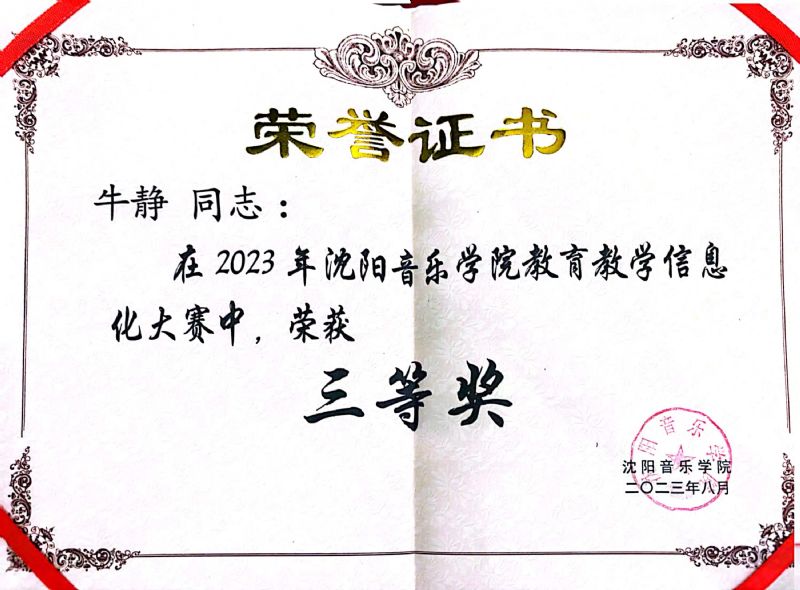 在我院教育信息化中心举办的2023年沈阳音乐学院教育教学信息化大赛中,我部门王华兰荣获一等奖,牛静荣获三等奖。