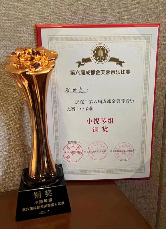 我系2022级小提琴专业研究生崔世龙,荣获第六届成都金芙蓉音乐比赛小提琴专业组铜奖。(指导教师:贾晓程教授)