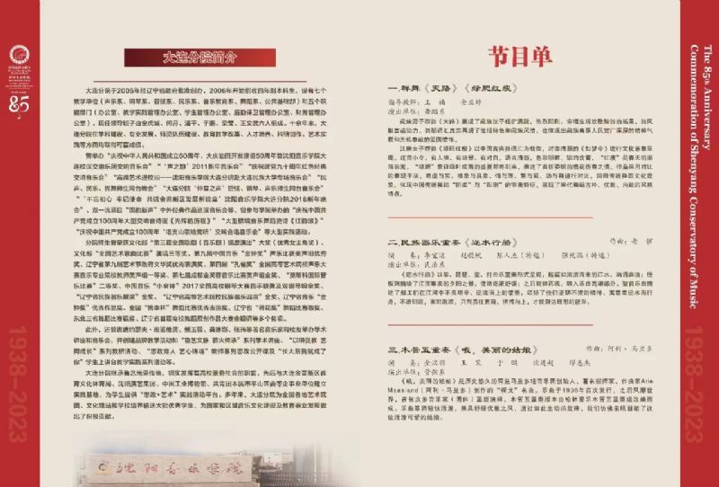 音乐会名称:“我们走在大路上”沈阳音乐学院建校85周年纪念活动—大连分院专场音乐舞蹈节目展演音乐会
