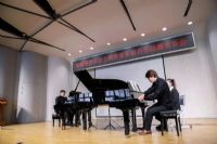 旅英钢琴博士程妍和钢琴系副主任崔秀峰共同演奏了肖斯塔科维奇的《a小调双钢琴小协奏曲 Op. 94》,此曲给听众带来了充分的音乐想象力并凸显了作曲家的写作特点。刘昱蕲和陈琢共同演奏了格里埃尔的《双钢琴小品六首 Op. 41》,琴声悠扬,动听的旋律极具感染力。特邀嘉宾白斌博士和崔秀峰共同演奏了肖斯塔科维奇《第五交响曲Op. 47 第四乐章》双钢琴版,快速联动的旋律营造了一种热闹、光明和胜利的气氛。音乐会的末尾,由崔秀峰和陈琢共同演奏别利亚科夫的《被遗忘的华尔兹》,旋律优雅婉转,音乐充满律动。