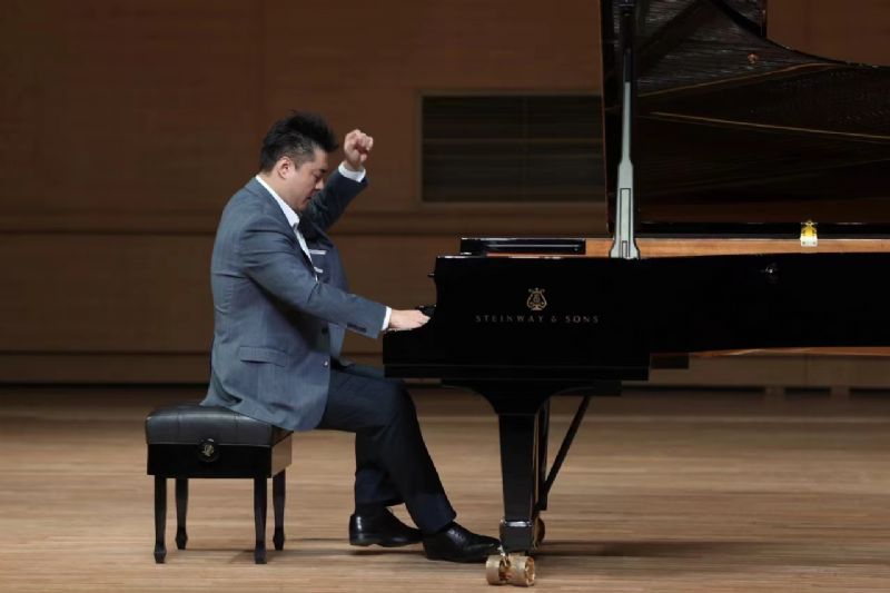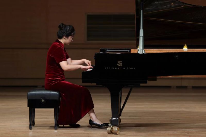 旅俄博士印慧媛演奏了巴拉基列夫的《东方幻想曲--伊斯拉美》,这是一首技巧性很高的钢琴作品,连续八度、快速远距离大跳、快速同音重复以及复调等极难演奏技巧被娴熟地展现,把高加索民族舞曲的热情奔放体现得淋漓尽致。旅英博士徐子钧演奏了法泽尔·赛依的《黑色地球》,浓郁的土耳其曲风由远及近,让人沉浸其中,不仅感受到黑海山脉的自然风情,还有东西方文化、传统与现代的完美交融。副教授苏乐演奏了由李劫夫歌曲《歌唱二小放牛郎》改编的钢琴作品《叙事曲》,熟悉的旋律一经响起,便把人重新带回到抗战硝烟烽火中,带回到了鲁艺前辈以音乐作“武器”,高扬爱国旗帜,吹响民族解放号角的艰苦岁月里。