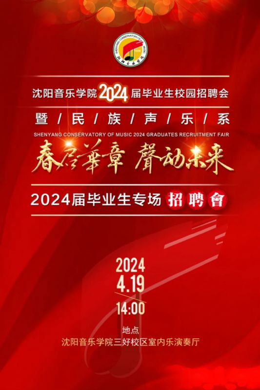 沈阳音乐学院2024届毕业生校园招聘会暨民族声乐系“春启华章 声动未来”2024届毕业生专场招聘会预告