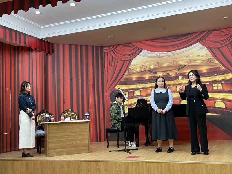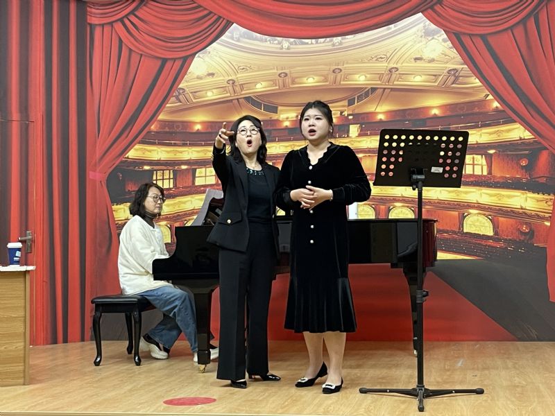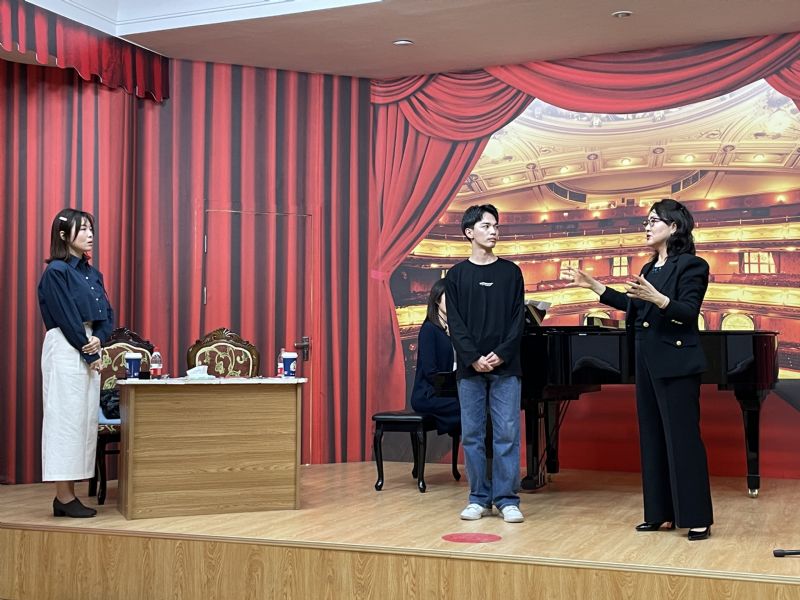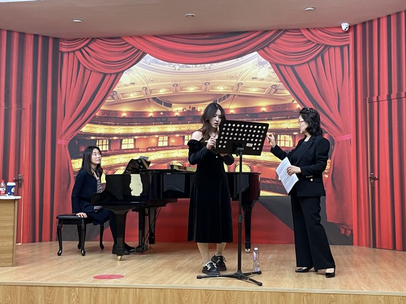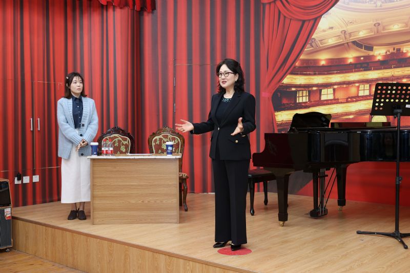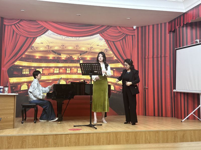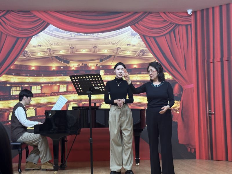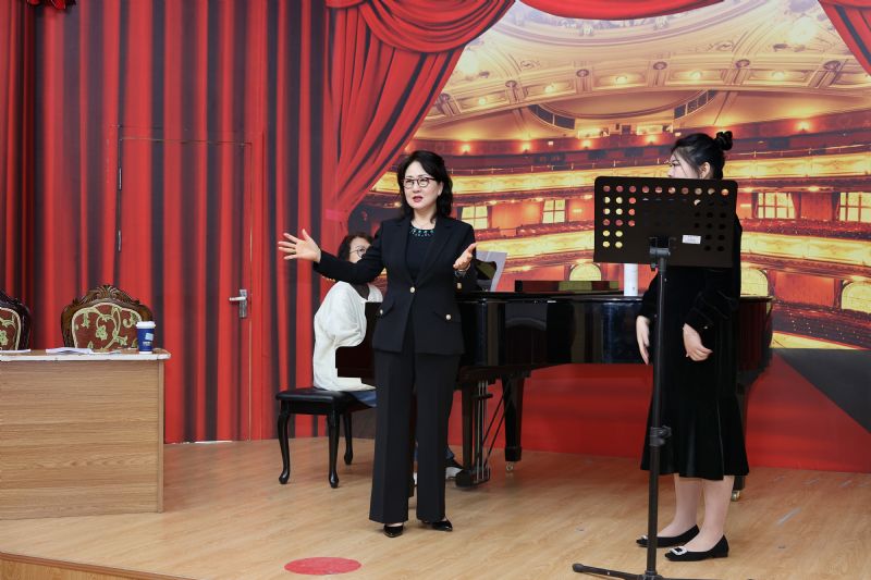 大师课中,朴教授用生动的语言和形象的示范,带领学生们走进艺术的殿堂。她详细讲解了音乐演唱时需要注意的技术技巧,如发声的位置和气息的运用等,强调了探索歌曲的背景、角色的内涵演绎等,引导学生要充分发掘艺术作品的表现力,将歌曲的“灵魂”表现的淋漓尽致。