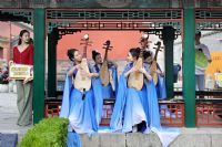 在保极宫、后花园、颐和殿,民族器乐系的同学们带来了具有浓厚中国风色彩的视听盛宴。二胡重奏《兰亭序》通过对书法意境和情感的借鉴融合,表达人生思考和情感体验;二胡曲《战马奔腾》表现了守卫边疆的骑兵战士英勇顽强、一往无前战斗精神;琵琶曲《早春》采用江南丝竹与评弹音乐的元素,以琵琶擅长的江南语言,表现万物复苏的早春景致;琵琶曲《欢沁》以欢快的旋律令人耳目一新、心旷神怡。作曲家关大洲为央视《国家宝藏》节目量身打造的开场音乐《象王行》,刚柔并济、大气磅礴,是当今具有代表性的国风作品之一,民乐合奏《象王行》令观众感受到民族音乐的艺术魅力。