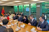 郝鹏在与金东兖会见时谈到,去年10月,两省道结好30周年之际,知事先生到访沈阳,我们共同举行了丰富多彩的纪念活动,签署了两省道《共同宣言》,为进一步拓展相关领域务实合作奠定了坚实基础。时隔近6个月,在美丽的水原与知事再次见面,感到格外亲切。代表团一行一踏上水原的土地就感受到京畿道人民的热情。京畿道经济的活跃、文化的繁荣、环境的优美和社会的和谐令人印象深刻。当前,辽宁经济社会发展保持良好态势,各项工作呈现新变化、新气象,为双方进一步加强合作创造了更多有利条件。希望以我们双方互访为契机,进一步在经贸、科技、产业、人文、青少年等领域深化交流合作,携手在中韩地方合作中作出表率。