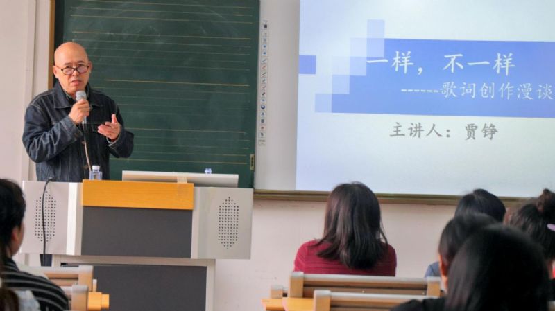 在讲座的最后,贾铮老师分享了自己在歌词创作实践中的体悟和认识。他强调了歌词创作中的真情实感——“假的东西势必大而无当,缺乏具象的内容势必空洞无物”。他鼓励学生们要勤于思考,深入挖掘常人“心中有、笔下无”的情感和思想。