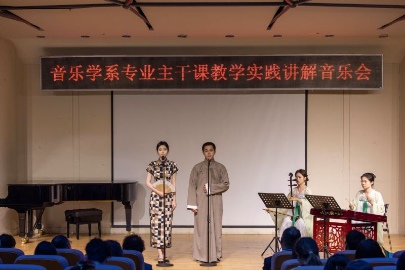 音乐会融合了“演”与“讲”的双重形式,由音乐学系教师指导、音乐学系共计78名本科生与研究生参演。演出内容多元丰富,涵盖了中国传统音乐的韵味、西方音乐史的经典、中国音乐史的瑰宝以及世界音乐的精华。不同风格、不同体裁的音乐作品交替上演,为听众带来一场视听盛宴。讲解者引导听众将音乐聆听与知识探索相结合,从历史维度了解音乐作品的内涵与精髓,深刻领悟到时代语境下音乐的无穷魅力与力量。