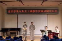 4月23日下午,“以文解音 以乐明心”——音乐学系专业主干课教学实践讲解音乐会在第二教学楼424多功能厅精彩上演。沈阳音乐学院党委副书记孙旭东,纪委书记、监察专员闫玉娇,副院长庞渤,学校办公室主任,音乐学系领导班子成员与全系师生共同观看这场融合理论知识与音乐魅力的盛会。