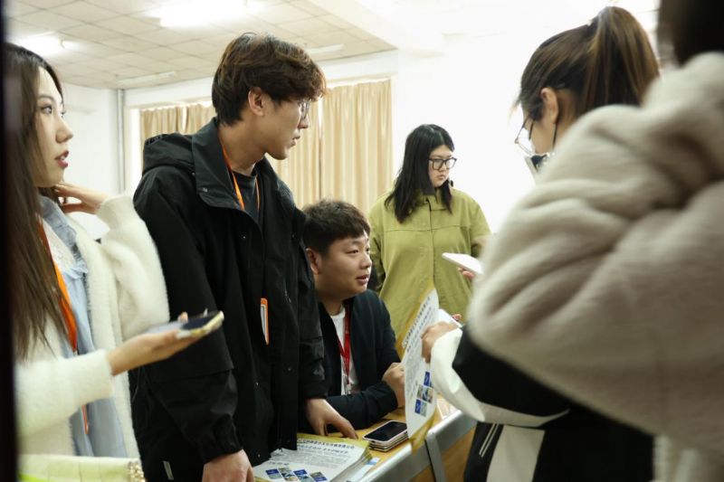 招聘会现场,各家公司代表详细介绍了企业总体运营模式、招聘岗位、发展平台及薪酬、应聘方式等,直接对标大学生就业需求,鼓励同学们积极参加企业招聘。