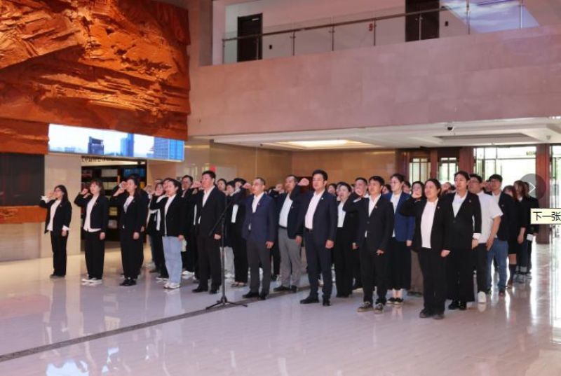 在展馆序厅,机关党委书记耿岩带领全体党员面向鲜红的党旗,整齐列队,庄严肃立,紧握右拳,重温入党誓词。铿锵有力的誓言,在大厅内久久回荡,表达了每一位党员对党的无限忠诚,为党的事业奋斗终身的信念和决心。