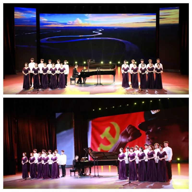 此次音乐会以独奏曲《红旗颂》拉开序幕,随着时光倒转,耳熟能详的《快乐的女战士》、《军民一家亲》、《映山红》、《山丹丹花开红艳艳》、《解放区的天》等经典曲调响起,在党带领人民披荆斩棘的年代,中华儿女历尽艰难困苦,却矢志不渝。独奏曲《翻身的日子》、《浏阳河》、《南海小哨兵》、《谷粒飞舞》带领大家重温了中国共产党团结带领人民群众在时代的大潮中不忘初心、砥砺前行的奋斗岁月。周磊老师演奏《唱支山歌给党听》、冯源老师与学生合唱队共同完成的《红歌串烧》、《长短的组合——噔得孔》、《皮黄》、《张帅前奏曲》、《努玛阿美》等作品,展望了中华民族辉煌腾飞,经济文化蓬勃发展的美好时代。音乐会最后,一曲《万疆》,为大家描绘出一幅壮美华夏,辽阔山河的宏图美景。
