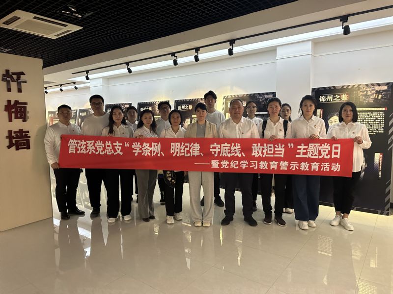•          为深入学习贯彻习近平总书记关于党纪学习教育重要讲话和重要指示精神,认真落实学院《关于开展党纪学习教育的实施方案》要求,进一步增强师生党员学纪、知纪、明纪、守纪的底线思维,推进清廉建设。5月17日,管弦系党总支组织师生党员赴锦州苹果廉洁教育基地开展“学条例、明纪律、守底线、敢担当”主题党日暨警示教育活动,引导广大党员干部进一步增强廉洁意识、纪法意识、规矩意识,不断提升拒腐防变的能力,推动党纪学习教育有声有色,入脑入心。