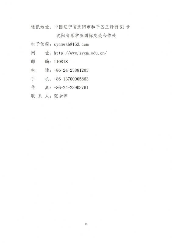 沈阳音乐学院2024年本科留学生招生简章