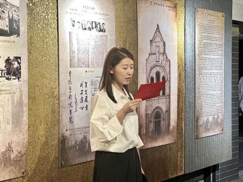 学生们有序进入校史馆,在学生讲解员声情并茂的讲解中,详细了解了学校从延安鲁艺时期、东北鲁艺时期、东北音专时期、沈阳音乐学院时期等四个时期的建校史及发展历程。一行行文字、一张张图片、一副副牌匾、一件件实物,生动而形象地重现了沈阳音乐学院发展的全过程,它们见证了沈音的历史与过去,造就了沈音的非凡与辉煌。尤其是镇馆之宝——“鲁迅文艺学院”的牌匾,仿佛在向后人讲述着延河水畔、宝塔山下那难忘的火红岁月,回味着我们从延安走来的86载风雨历程。文化沉默不语,历史闭口不言,却让躁动的心在这一刻沉静。它鲜活如昨,就像时光从未被惊扰。它不知时光,却守护着时光,承载着源远流长、生生不息的鲁艺精神。