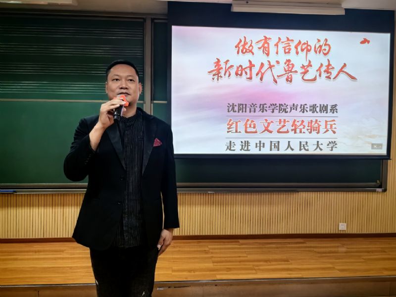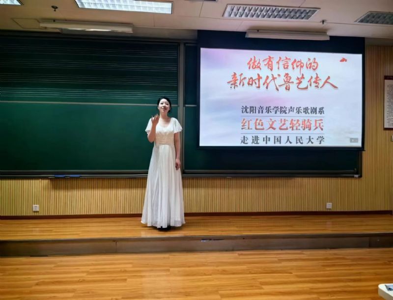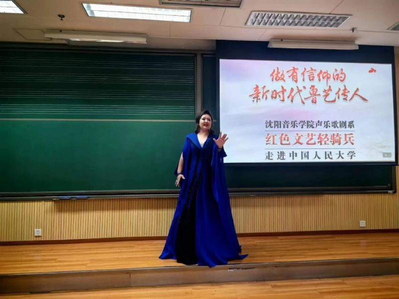 5月26日,声乐歌剧系“做有信仰的新时代鲁艺传人”红色文艺轻骑兵走进中国人民大学举办鲁艺经典红色作品讲演音乐会。本场讲演会切实践行了延安文艺座谈会讲话精神,将红色文艺轻骑兵队伍带进了课堂,讲授鲁艺经典作品背后的故事,将沈阳音乐学院鲁艺红色基因和精神向全社会大力推广和传播,努力提高了我院专业竞争能力和社会影响力,坚持让文艺扎根人民,服务人民。