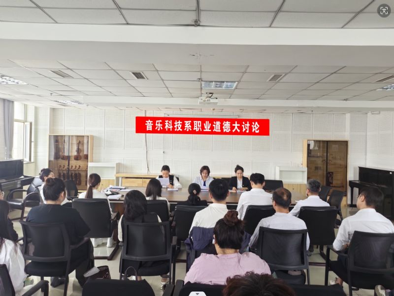 5月29日,在长青校区第二教学楼1204会议室,音乐科技系开展了职业道德大讨论。系班子成员、全体教师参加了此次会议,会议由音乐科技系直属党支部书记姚艳秋主持。