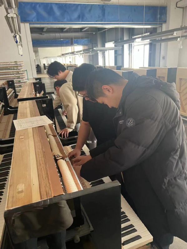 当天,在企业领导的带领下全体师生对实习环境进行了参观,然后经过校企双方协商对接,进行实习工作分组,共分为头番、二番、键盘整理、调律四组。随后,同学们依据被分配的组别进行详细深入学习与实操,熟练操作所学知识后分组进行轮换,以确保让每名学生对每道工序充分实践。在实践过程中,同学们的专业能力、认真的实习态度,以及持之以恒的工匠精神得到了企业领导和老师的高度认可。
