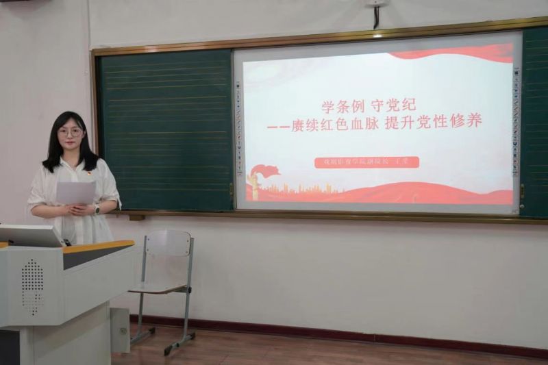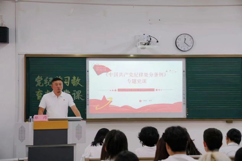 副院长王莹以《学条例守党纪——赓续红色血脉提升党性修养》为题为第四党支部和第六党支部党员师生讲授党纪学习教育纪律党课。王莹以加强党性修养、筑牢思想堤坝为切入点,向师生详细解读了《条例》的精神内涵。她强调,要深入学习领悟习近平总书记关于加强党的纪律教育的重要论述,准确把握新时代加强党的纪律教育的重要经验,坚决贯彻落实党纪学习教育各项学习部署任务。