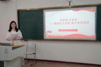 党总支副书记管宁以《增强党性修养 坚定理想信念 扣好廉洁从业的第一粒扣子》为题为第五党支部党员师生和毕业生代表讲授党纪学习教育纪律党课。管宁紧密结合大学生从业现状,分别从廉洁从业的重大意义、年轻干部违纪违法行为的主要特点、新形势反腐败斗争的形势、增强拒腐防变的能力四个方面阐述。她强调,广大党员师生和毕业生代表要树立更高标准,自觉接受组织监督、群众监督和社会监督,以更严的要求,更实的作风,投身工作实践。