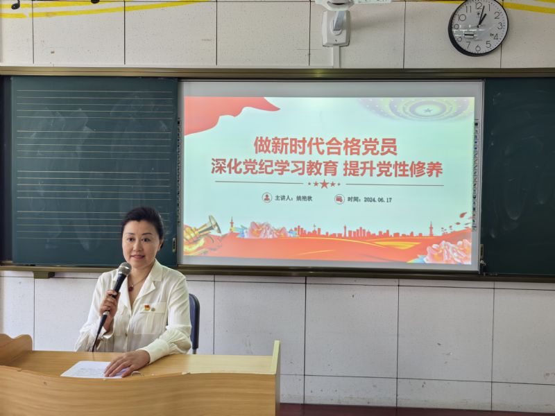 会上,姚艳秋书记首先以《深化党纪学习教育 提升党性修养,做新时代合格党员》为题,进行了生动的党课讲解。她强调,作为共产党员,必须严守党的纪律,保持高尚品质,坚定理想信念,强化党性修养。同时,她鼓励党员们要勇于担当,善于作为,充分发挥共产党员的先锋模范作用。