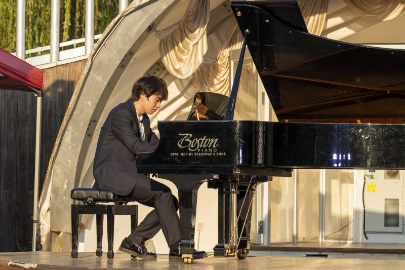 演出中,我院钢琴系的同学们先后演奏了肖邦的《降A大调“英雄”波兰舞曲》(Op.53)、中国作品《茉莉花幻想曲》、拉赫玛尼诺夫的《音乐瞬间》(Op.16 No.4)、《拉赫玛尼诺夫第二奏鸣曲》第三乐章、格拉纳多斯的《音乐会快板》、贝多芬的《降E大调钢琴奏鸣曲》(Op.81a)第三乐章、斯克里亚宾的《升d小调练习曲》(Op.8 No.12)以及融合大量戏曲元素、彰显“中西合璧”艺术魅力的《皮黄》等经典作品。演出现场,我院民族声乐系艺术指导教师徐威和学生李文跃、邵佳宁倾情加盟,为观众带来《红星照我去战斗》《映山红》等红色经典歌曲。同学们的表演情感真挚、震撼心灵、令人沉醉,赢得现场观众的阵阵掌声。伴随着钢琴曲《浑河之夏》的悠扬旋律,开幕式演出完美落幕。